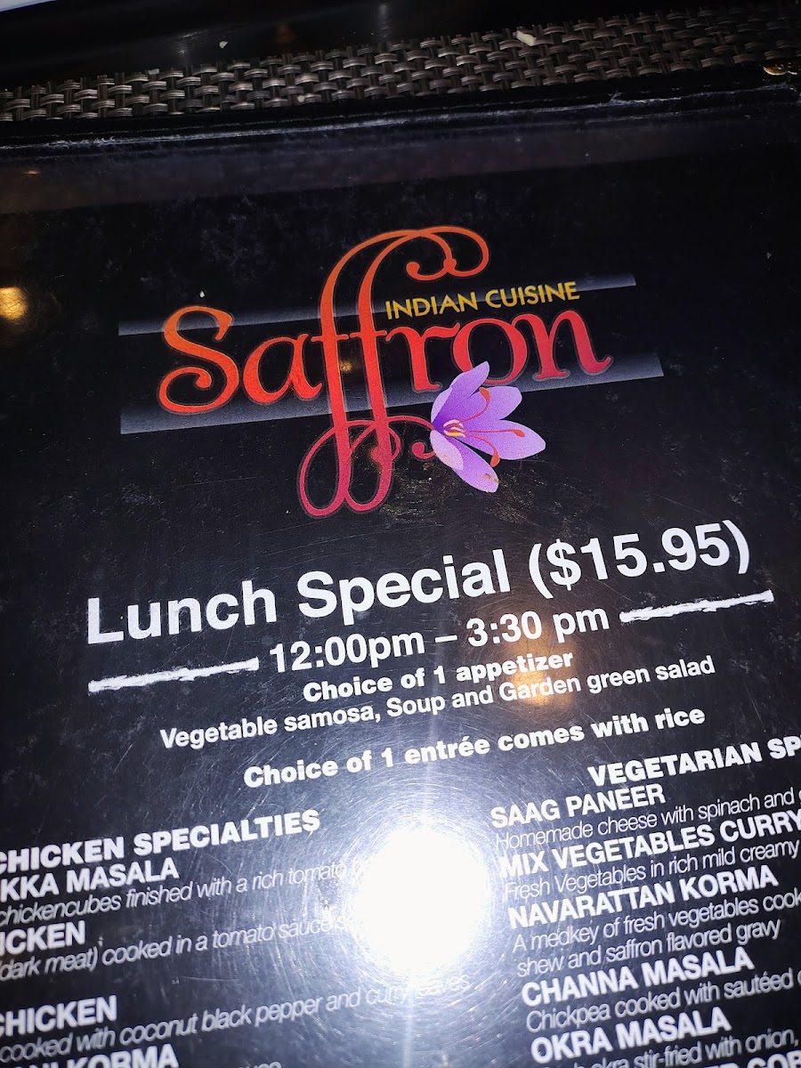 Saffron Indian Cuisine Astoria Menu